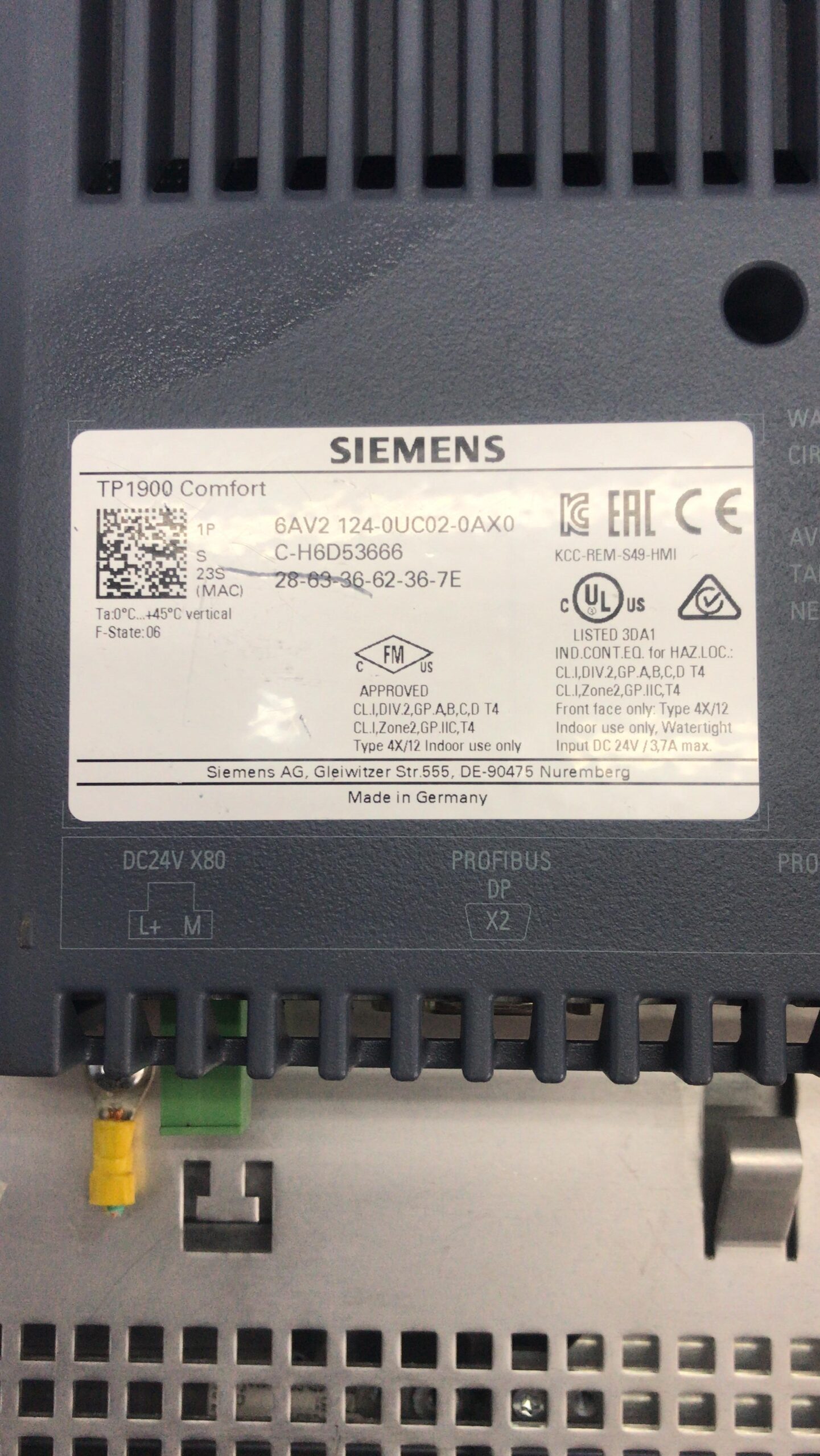 SIEMENS TP1900 COMFORT 6AV2124-0UC02-0AX0